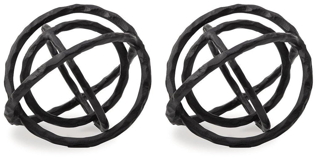 This sculpture brings contemporary art full circle. Interlocking metal rings in a black finish add an art gallery touch for a console table, bookshelf or mantel.