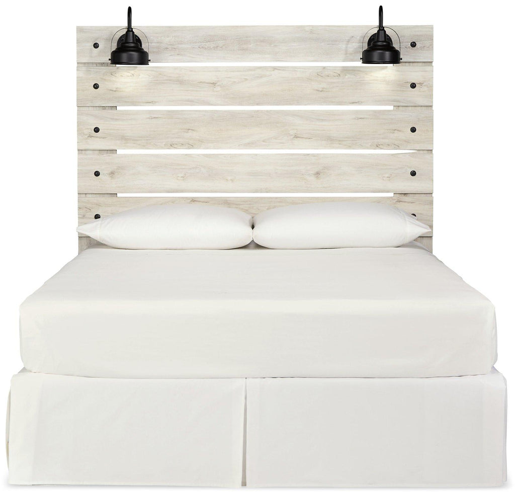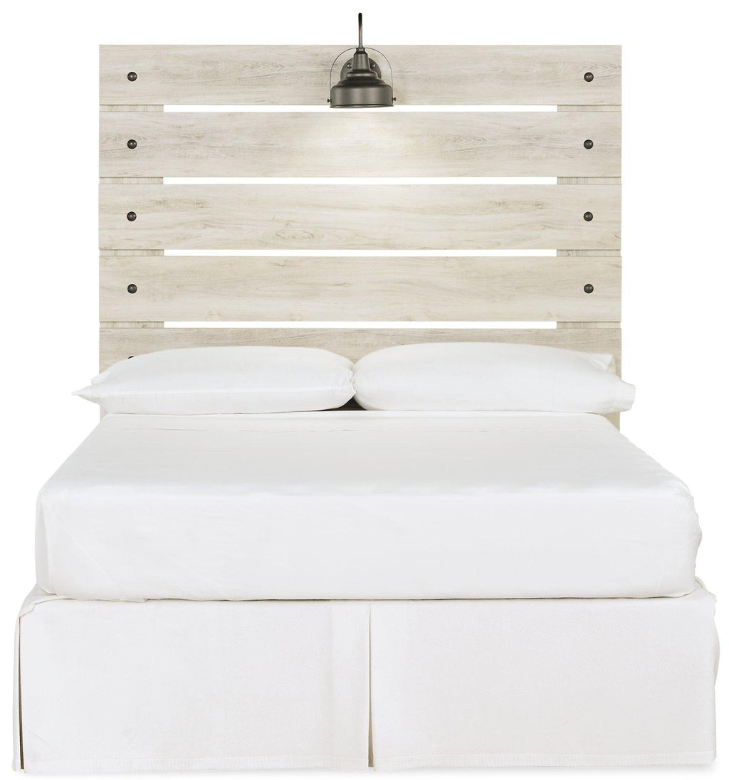 What a delightful take on rustic industrial style. Whether modern loft or modern farmhouse, this full panel bed makes itself at home. The wispy whitewash palette enhances without covering the grain for that weathered look you crave. Love to read in bed? You’re sure to find the retro-chic light sconce and USB plug-ins on the open-slat style headboard such a bright idea.