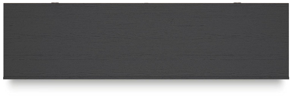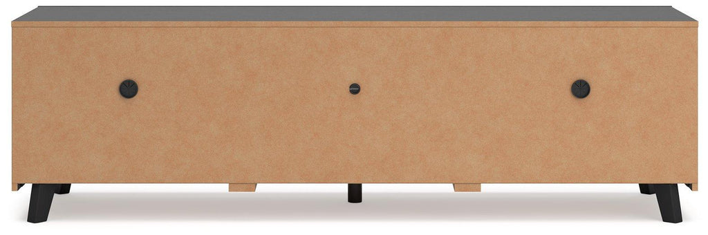 Entertain the art of modern living with this TV stand. Pairing a subtle wood grain look with a trend-right matte black finish, it’s beautifully in tune with your clean-lined design sensibility. Packed with potential, two sliding doors reveal even more adjustable shelving, just the ticket for storing your tech consoles, DVDs and games.