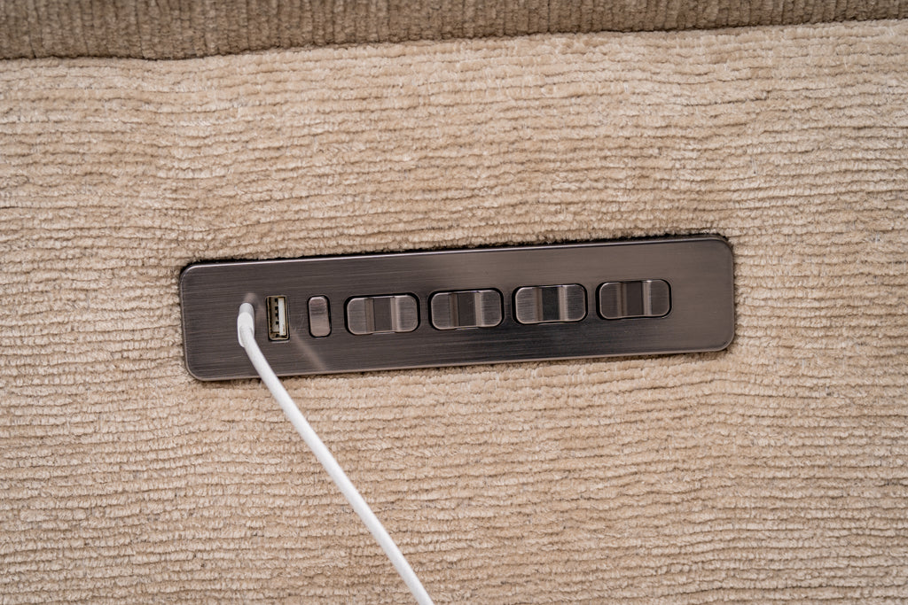 The ultimate in power recline, this is the perfect match for those looking for the recliner that has it all. Sophisticated is a medium-sized option that provides ample space to kick back in cloud-soft comfort, with an innovative recline system and swivel. The recliners pull tuft back design gives a clean look while providing back support. Relaxation of the future, complete with USB-A and USB-C charging ports conveniently in the recline control to keep all your devices powered up and within reach. Relaxation of the future, the Sophisticated Power Swivel Gliding Recliner with Power Headrest and Lumbar has everything you need for ultimate relaxation.