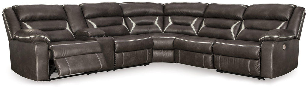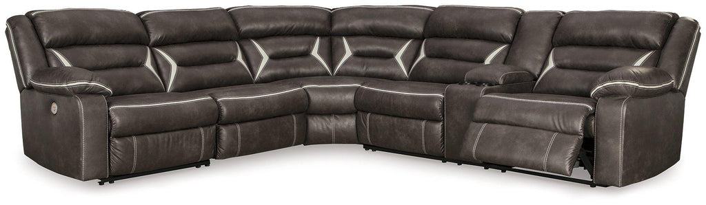 You could play it safe. Or you could choose to stand out in the crowd with this brilliantly styled sectional with power. Ultra cool, ultra contemporary and ultra comfortable, this fashion-forward sectional sports a fabulous faux leather enhanced with contrasting stitching that’s right on point. Rest assured, sumptuous pillow top armrests and sleek channel cushioning feel every bit as good as they look. Enlightened elements include a power control with USB plug-in and blue LED lighting (by the cup holders) to create a home theater experience worthy of A-listers.