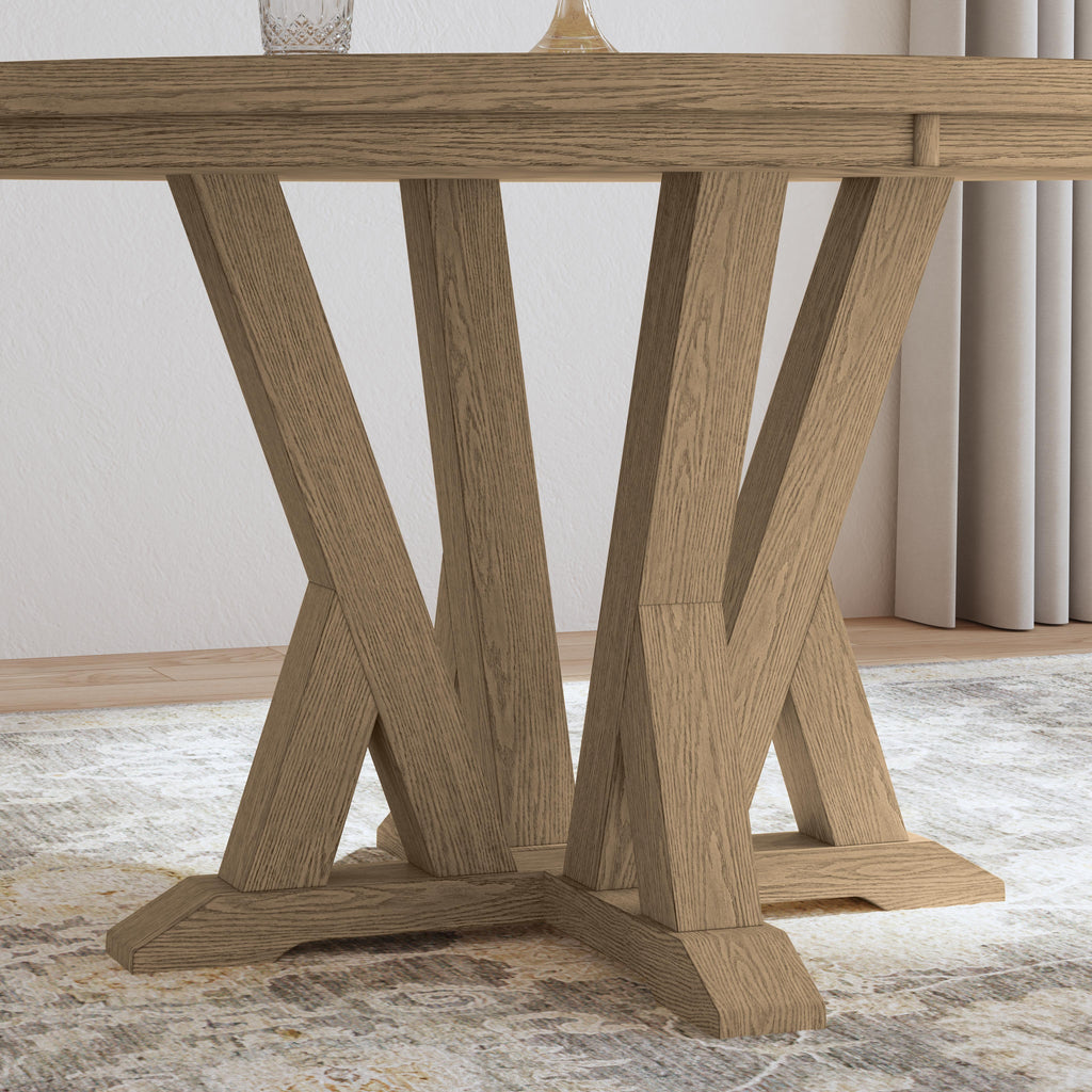 Elevate your dining space with the casual sophistication of the Lattice round dining table. Enduring craftsman style captivates the eye with bold architectural shapes and a striking woodgrain pattern. Comfortably seating up to 5 people, this table features a natural oak finish for a touch of inviting warmth. Crafted from high-quality, ethically harvested FSC certified woods, the Lattice round dining table ensures lasting durability and beauty for years of memorable mealtimes.
