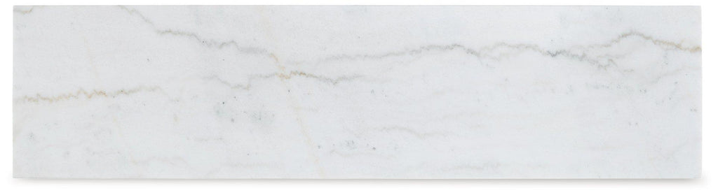 This sofa table is simple in design but big on style. Finished with a trend-right grayish brown wood tone, its bold, blocky profile and natural marble top are timeless classic choices that is ideal for pairing with an ottoman underneath to pull extra seating into the room or remaining clean and sleek on its own. Adding to its beauty, the marble top's color variations, fissures, mineral deposits and veining are naturally formed and are not defects.